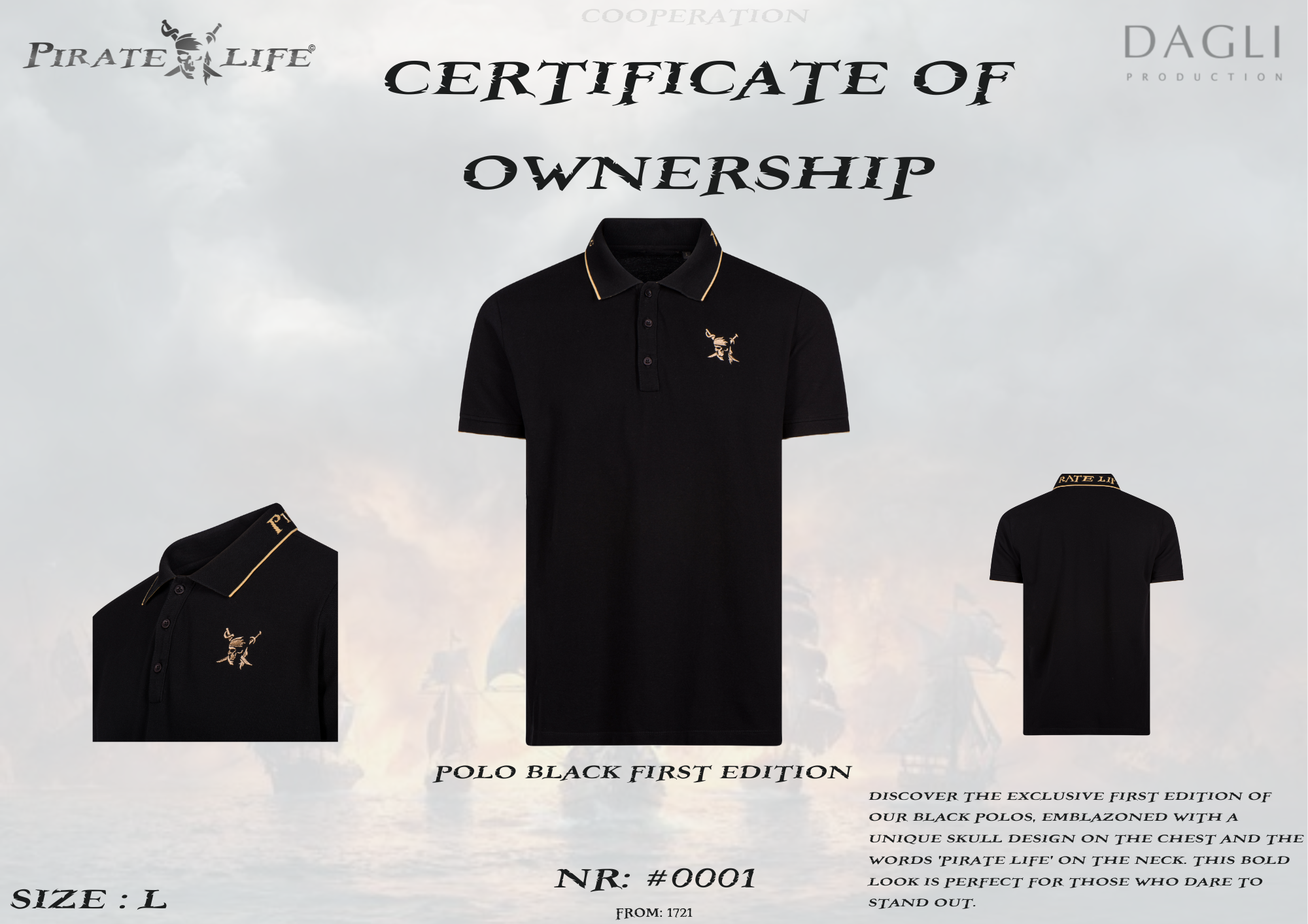 Discover the exclusive first edition of our black polos, emblazoned with a unique skull design on the chest and the words 'Pirate Life' on the neck. This bold look is perfect for those who dare to stand out.